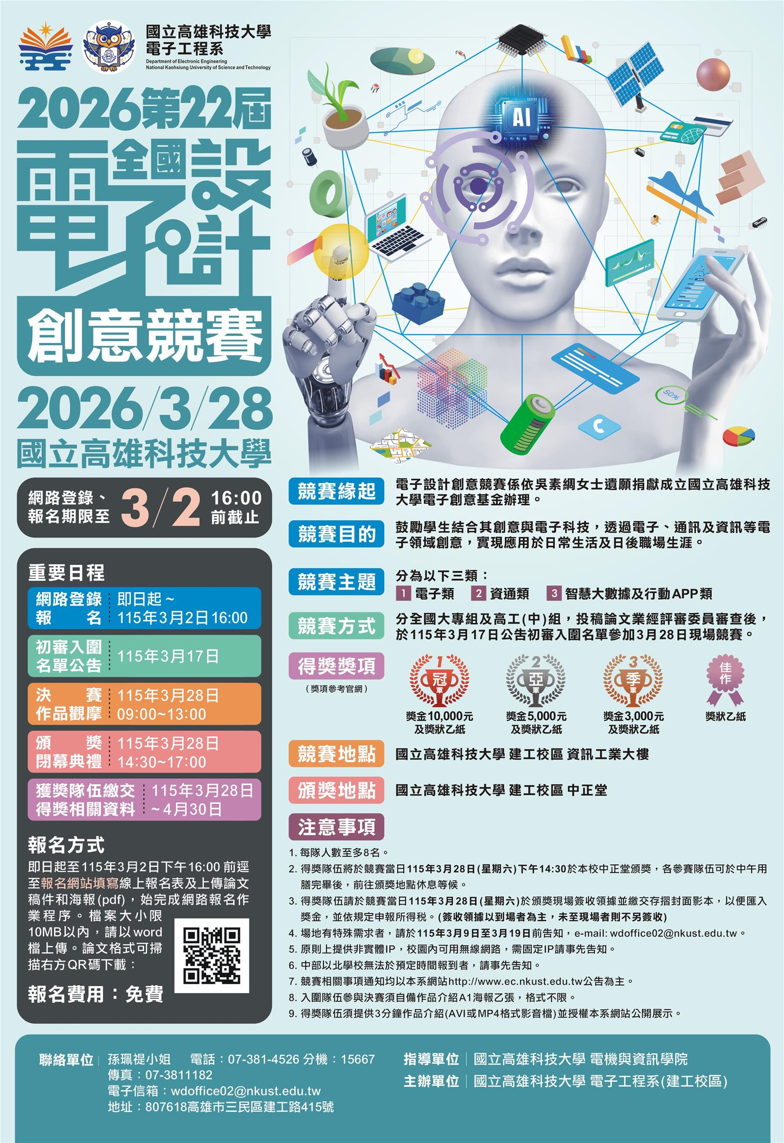 一、本屆全國電子設計創意競賽資訊公告於本校電子工程系(建
