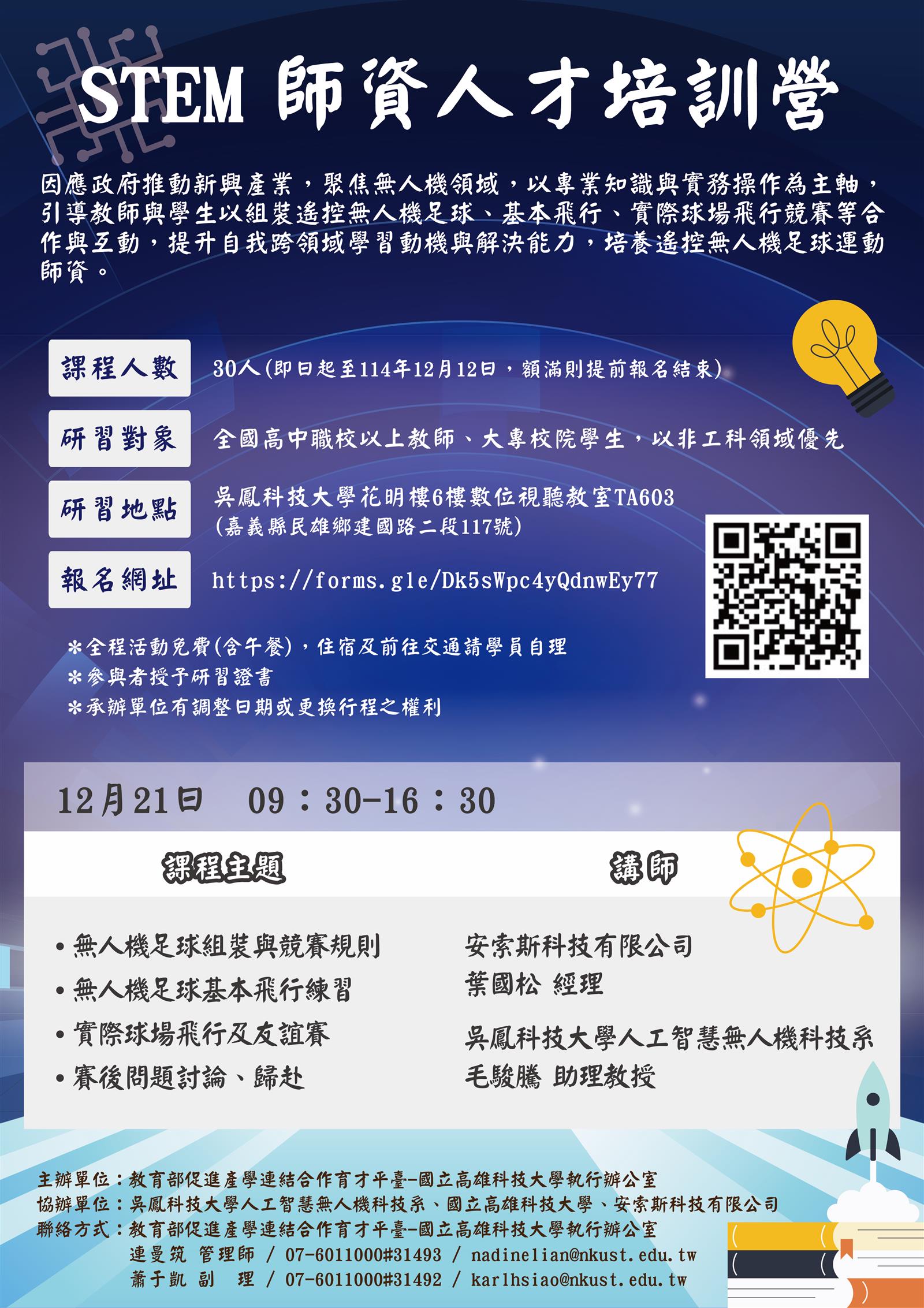 教育部促進產學連結合作育才平臺-國立高雄科技大學執行辦公室與吳鳳科技大學共同辦理「STEM師資人才培訓營」