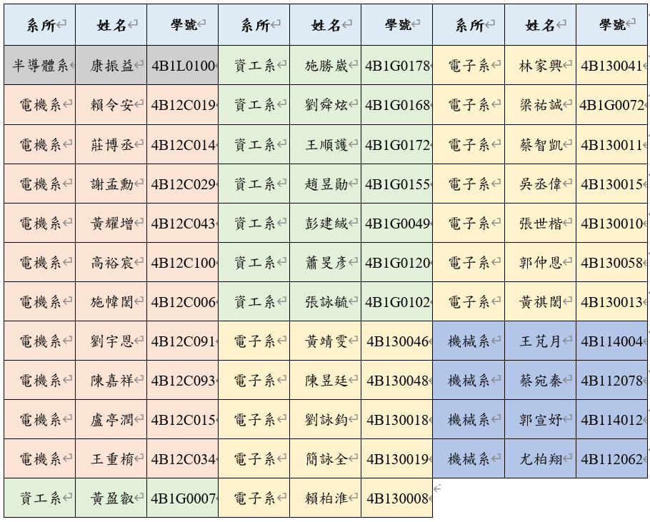 114學年物聯網學分學程暨自動化與控制學分學程獎助學金第一階段審查通過名單